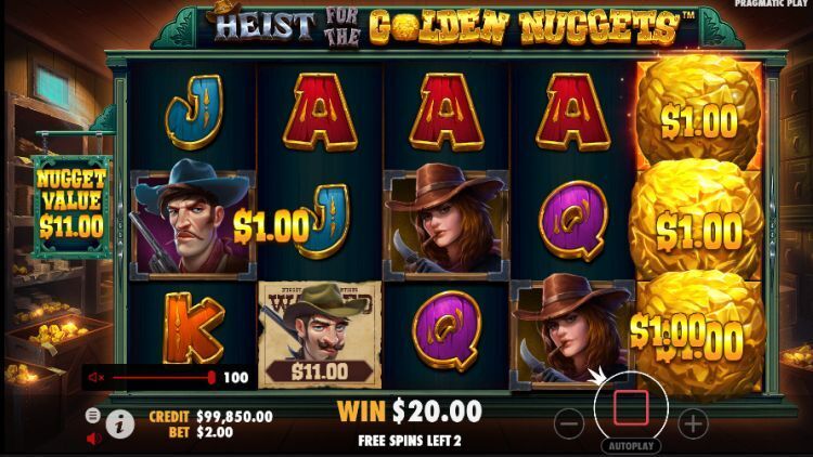 Heist for the Golden Nuggets is een Pragmatic Play gokkast die zich afspeelt in het Wilde Westen. Win gratis spins en verzamel bandieten die je dikke geldprijzen opleveren. De maximale winst bedraagt 5.000x de inzet.