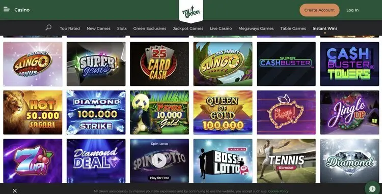 Wel heeft Mr. Green Casino een ruime collectie online krasloten. Hot Safari 50.000, Super Cash Buster, Diamond Strike 100.000 en 25 Card Cash zijn voorbeelden van krasloten die je hier kunt spelen.
