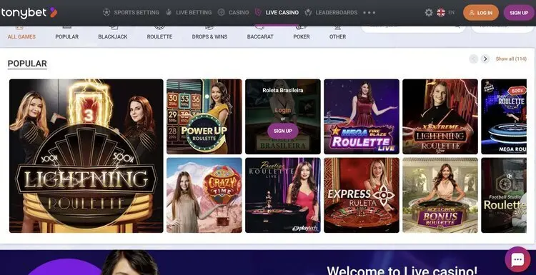 Live casino van TonyBet Casino