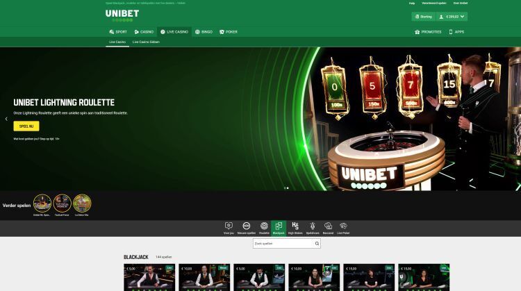 Behalve deze exotische spellen biedt Evolution ook live online roulette, online blackjack en online baccarat aan. Ook Pragmatic Play staat live steeds meer zijn mannetje. Unibet heeft meerdere blackjack en roulette tafels met Nederlandstalige live dealers. Opvallend: deze dealers doen gelukkig heel wat minder aan slap keuvelen (ook met elkaar) dan bij andere Nederlandse online casino’s – voor ons een erg positief signaal. Wat we wel een beetje missen zijn casinospellen zoals Plinko.